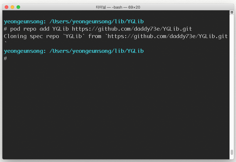 pod repo add [Repo이름] [깃주소]